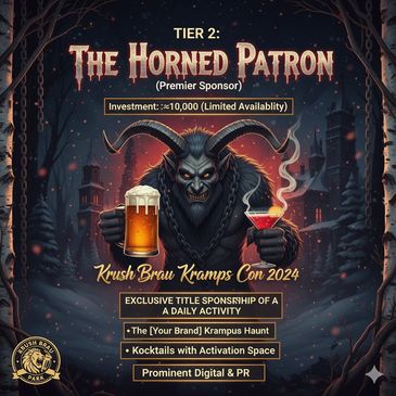 Benefit CategoryDeliverablesTitle BrandingEvent officially titled: [Your Brand] Presents: Krush Brau Krampus Con.Event ActivationTitle Sponsorship of a Major Event: Exclusive naming rights for either KrampusNacht & The Annual Krampus March or The Great Krampus Ball (e.g., The [Your Brand] Krampus Ball).Physical PresencePremium 10' x 20' Activation Space in a high-traffic area (Beer Garden or main entryway) for the entire 3-week duration. Includes opportunity for product sampling/sales (subject to venue approval).On-Site BrandingLogo prominently displayed on all main event banners, flags, and entry archways. Dedicated [Your Brand] Toast led by the DJ/Entertainer hourly.Digital & PRLogo included as "Presenting Sponsor" on all press releases, event website (krampus.us), and tickets. Dedicated social media campaign (10+ posts) and top-tier logo placement on all digital ads.VIP Perks20 All-Access VIP Passes for the entire run of the event.